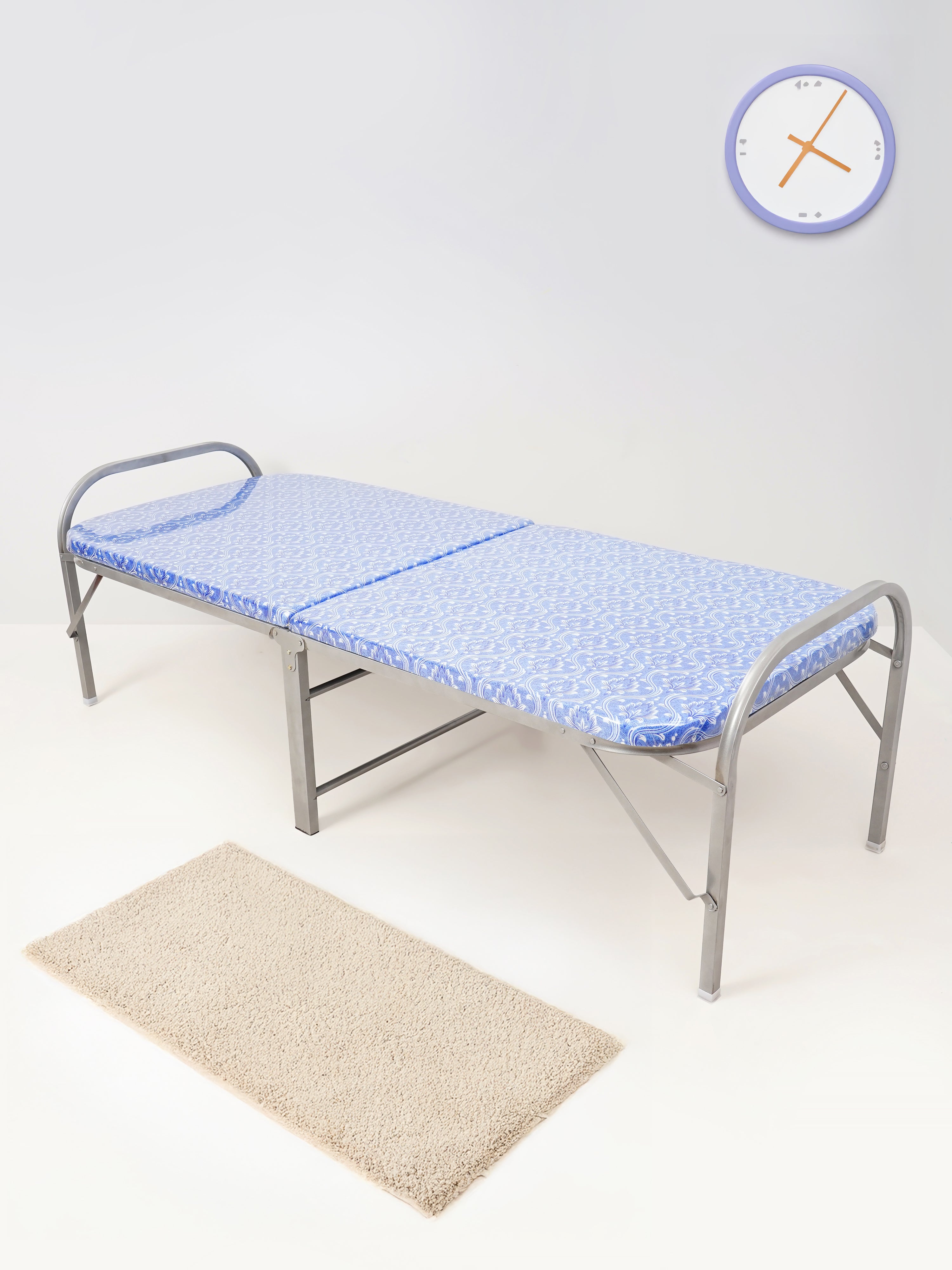 IndianArmar Foldable Metal Cot Bed with Mattress – Portable & Space-Saving Design for Home, Dormitory & Guest Use